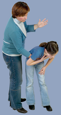 - Geef 5 rugslagen met de hiel van je hand. Kijk na elke slag of het probleem is opgelost.
