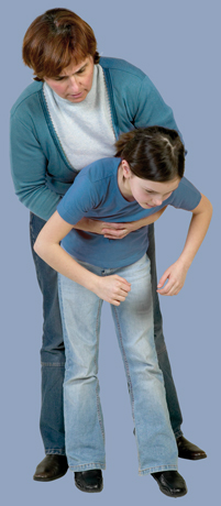 Ga achter het kind staan en breng je beide armen rond de bovenstreek van de buik.
