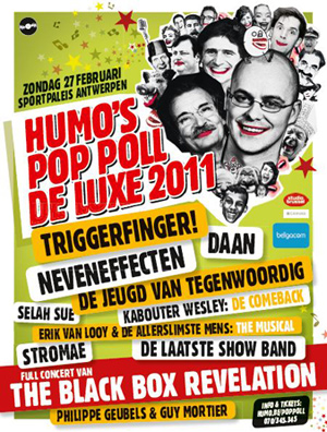 Humo’s Pop Poll de Luxe: in deze grootse liveshow krijgt u de door de Humo-lezer gekozen man/vrouw van het jaar, beste tv-programma, beste film, beste boek, beste cd, beste groep, beste zanger, … van 2010 gepresenteerd door Guy Mortier en Philippe Geubels. Lachen, gieren, brullen! ’t Is beloofd!