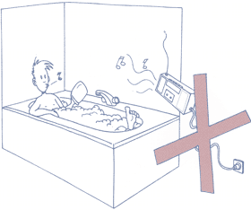 nooit elektrische apparaten in en rond het bad. Dat verhoogt alleen