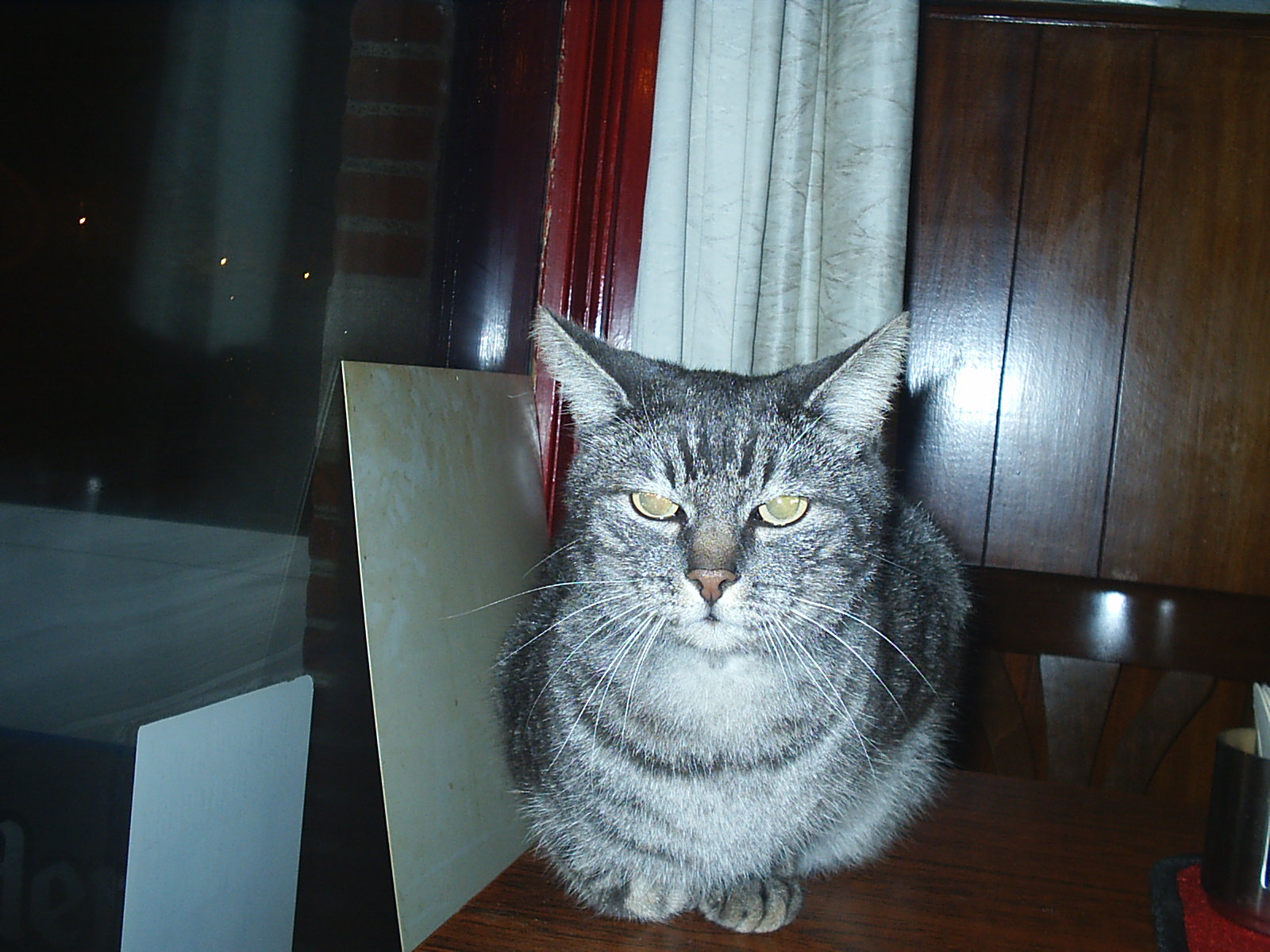 Af en toe durft ze wel het cafe binnengaan om een worstje. Dag muis.De groetjes aan mijn zus.