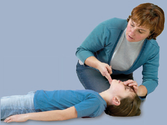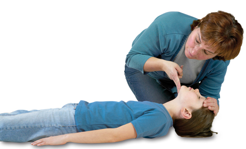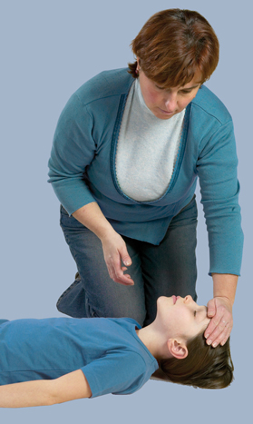 - Draai het kind op de rug en open de luchtweg (hoofd kantelen en kinlift).