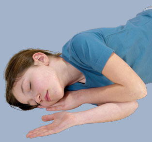 Leg het bovenste been zo dat heup en knie allebei een rechte hoek vormen.