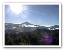 | Het hart van Réunion bestaat uit een ongerepte, groene wildernis. Vanuit de vrij droge westkant van het eiland doen we via het vochtig-groene dal van Salazie, een aanval op de top van de (vrijwel nooit besneeuwde) ` Piton des Neiges' (3069 m) . Bij zonsopgang is het uitzicht vanaf deze uitgedoofde vulkaan over de Indische oceaan uniek. Liefhebbers van wandelen kunnen kiezen uit een keur aan trektochten door de bergen, waarvan de Piton de Neige met 3069 meter overigens zonder één vlokje sneeuw de hoogste is. Niet sportief en ook niet milieuvriendelijk, maar wel heel spectaculair is een verkenning van het binnenland per helikopter. De kloven, waarover en waarin wordt gevlogen, gaan soms zo'n 1000 meter loodrecht naar beneden. Een duizelingwekkende ervaring. Per koptelefoon geeft de piloot uitleg over de natuurfenomenen. |
