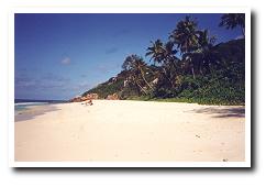 Andere eilanden van enig formaat zijn Praslin , het eiland van de coco de mer-palm. Het is het t weede eiland in oppervlakte (10,5 km x 3,7 km). Het is in een kwartier vliegen of in een uur varen vanaf Mahé bereikbaar. Praslin is de trotse bezitter van de Vallée de Mai, een World Heritage Site van de Unesco. De beroemde coco de mer wordt hier gevonden. Toen een eeuw geleden Generaal Gordon uit Khartoum hier voor het eerst voet aan wal zette, was hij ervan overtuigd dat hij in de Garden of Eden was. Dit paradijs is de Cote d'Or aan de oostzijde van het eiland. Een ander belangrijk eiland is La Digue , waar de koloniale sfeer nog het meest zichtbaar is in de oude plantagehuizen. Het is het vierde grootste (5 x 3 km) en is beroemd om de inheemse ‘black paradise flycatcher', een tropische vogel waarvan er nog zo'n honderd zijn. Alleen via Praslin kan men dit eiland bereiken: met de ferry-boot (half uur) of per privé helicopter (te huur als luchttaxi). Op La Digue is de ossenkar een dagelijks transportmiddel. De kusten van het eiland zijn rijkelijk bezaaid met stoere rotsblokken, zoals op Anse Source d'Argent. Ten noorden van deze kust ligt La Digue Island Lodge aan de Anse la Reunion.