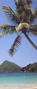 Columbus ontdekte het eiland in 1493 en noemde het naar de Maagd van Guadeloupe in Extramadura, Spanje. De Carib-indianen noemden het eiland Karukera of 'eiland van het prachtige water'. De eerste echte kolonisten waren de Fransen in 1635. De suikerplantages werden bewerkt door slaven. Zoals op de andere eilanden werd de slavernij afgeschaft in 1848. Hoewel het eiland nu dezelfde status heeft als Martinique (eerst Département, later Région) wordt Guadeloupe nog altijd gezien als het armere broertje. De politieke roep om onafhankelijkheid is hier echter wel luider en gewelddadiger. |