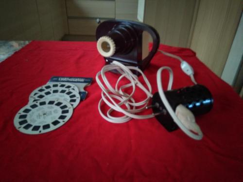 Vieux Master Junior projecter. Zeer goede staat. Zit al jaren in oude blikken doos hierbij op de foto.+ 3 schijfjes met afbeeldingen van Koning Bouwdewijn. Te Kuurne