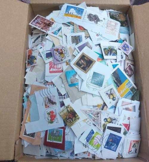 ik verkoop een doos met gestempelde postzegels van over gans de wereld, totaal 3,500kilo...