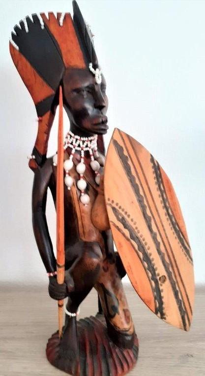 Zeer mooi handgemaakte in hout Zoeloe-krijger