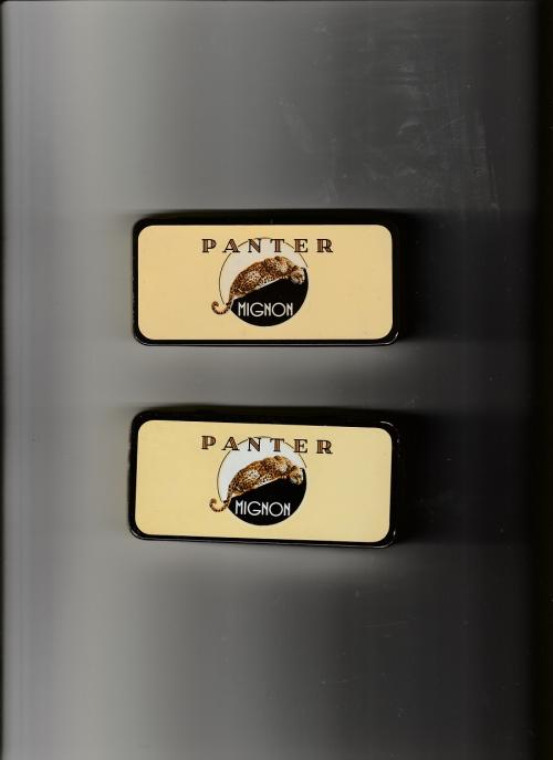 2 Zeer mooie sigarendoosjes PANTER MIGNON, metaal.In perfecte staat.Voor 4, ¤ per doosje.