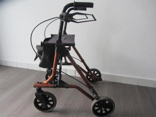 Zeer stevige en stabiele ALU rolator. Weinig gebruikt. Te koop aangeboden wegens sterfgeval. Door zijn laag gewicht (6,5kg) is hij perfect in de auto weg te brengen. Werd volledig nagezien. Voorzien van een afneembare tas. Hoogte handvatten: instelbaar 78cm -95cm