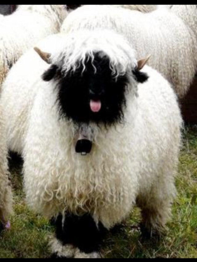 Omdat ik een specialleke ben , durf ik zelfs mijn tong uitsteken ... Een zwarte kop , maar een witte haardos en zwarte pootjes met witte sokjes ... Een langharige , witte , wollige vacht en rond mijn hals een kenteken met zwart aan de rand . Van contrasten gesproken !