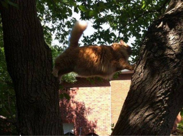 Wat een ontgoocheling : ik dacht dat ik de capaciteiten van een eekhoorntje onder de knie had , maar dat valt tegen ... Mijn mollige lichaam accepteert die vaardigheden niet en nu zweef ik tussen twee boomstammen . Ik zal mij met de realiteit moeten verzoenen : het leven kan hard zijn !