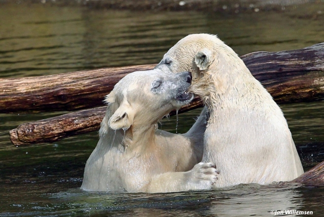 Niks, geen liefde... aan de linkse beer zijn uitdrukking te zien is die behoorlijk kwaad op de andere