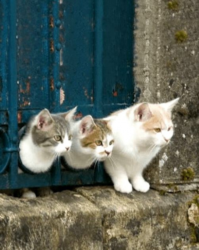 Zijn wij niet vindingrijk om gebruik te maken van deze nauwe gluurgaatjes ? Het straatleven is boeiend , maar ook gevaarlijk ... Wat is het fijn om toeschouwer te zijn !