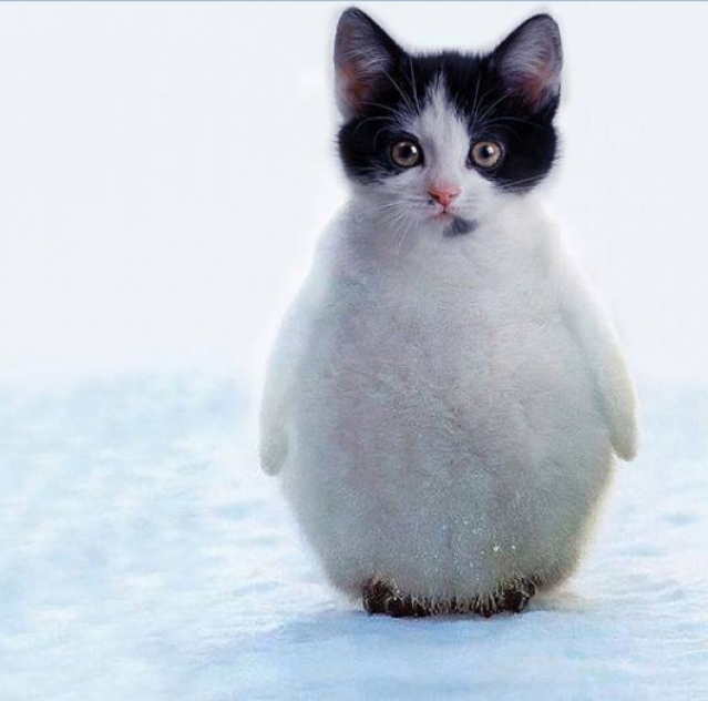 Moet ik een pinguïn voorstellen met een snoezig poezenkopje ? Dan moet ik nog leren waggelen , want dat maakt hen sympathiek . Mijn voorpootjes worden dan vleugeltjes en met mijn achterpootjes moet ik stappen . Vind je het plezierig ?