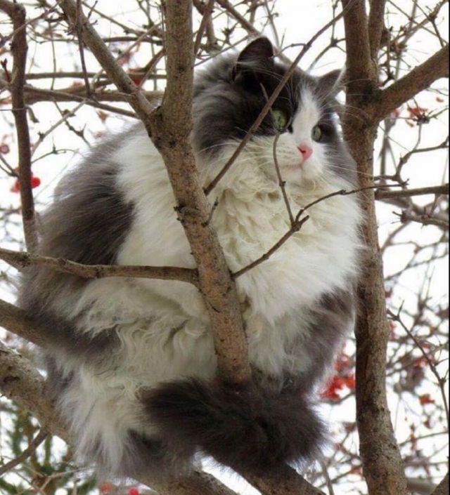 Welk pluizig bolletje gluurt er tussen de takken ? Het is een langharige , mollige poes die erin geslaagd is haar klimtalent te tonen . Van hieruit speurt ze naar de opbouw van een vogelnestje , want het is lente . Kan je je ogen niet geloven ... de lentekriebels zorgen voor wonderen !