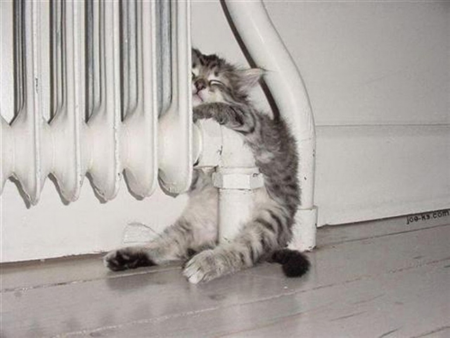 Ik klamp me vast aan een buis van de chauffage die lekker warm is , want ik ben zo moe en mijn oogjes vallen toe . Op deze plek is er geen poezencomfort ; dus ik moet mijn plan trekken ... Vind je het een goed idee ?