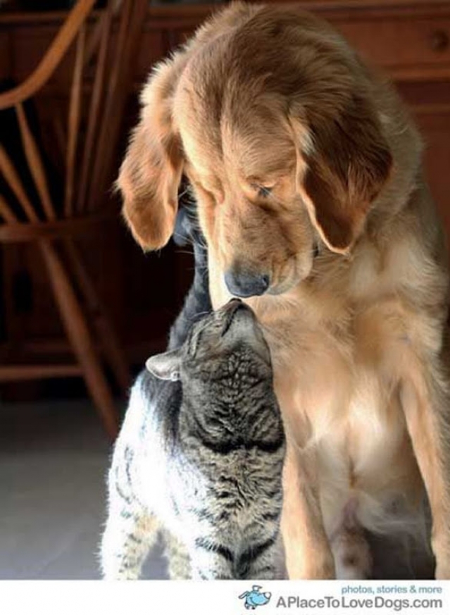 Ook al moet ik mijn kop omhoog houden om Woefs neusje te raken , hij valt in mijn smaak . Soms laat hij me schuilen onder zijn flaporen en mag ik mijn pootje op dat van hem leggen . Wij maken er geen woorden aan vuil : hij is mijn beste vriend !
