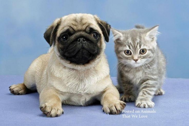 Een kitten en een puppy die samen opgroeien zijn dikke vrienden : al spelend leren ze elkaar beter kennen en beleven veel lol : ze spelen mooi weer !