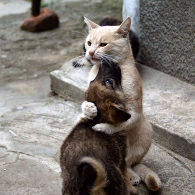 Troostende poezenpootjes rond het kopje van Woef kunnen soms wonderen doen ... We laten het niet aan ons hart komen en zoeken begrip bij elkaar . Gedeeld leed verdwijnt als sneeuw voor de zon !