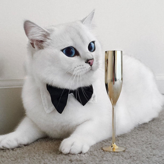 Mijn blauwe ogen fixeren de zilveren beker die ik gewonnen heb ... Het feestelijk karakter van het moment wordt onderlijnd door mijn zwart strikje dat mijn egale , witte , zachte pels opfleurt . Zo fier als een gieter , voel ik me en dat is niet overdreven !