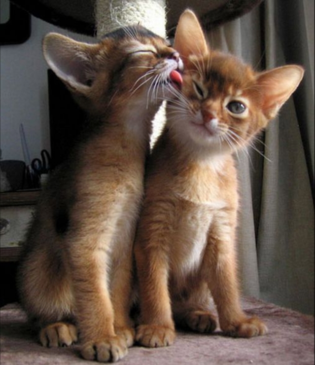 Sinds valentijn zijn we een koppeltje ... Daarom lik ik regelmatig het snuitje van mijn vriendinnetje . Zo ervaart ze mijn verliefde gevoelens . In ons krappaalhuisje dromen we van een leuk gezinnetje . Als twee schatjes van patatjes laten we ons door niets van de wijs brengen : het geluk lacht ons toe !