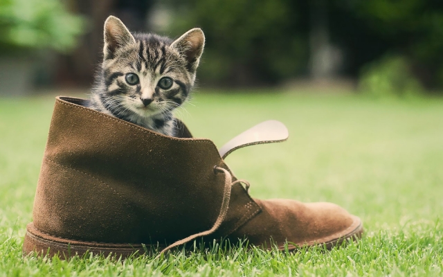 Ik wil op stap gaan ... daarom heb ik me in deze schoen neergezet . In de lente ben ik avontuurlijker aangelegd , want het zonnetje lacht me toe . Wat zal in vandaag ontdekken ? Ik hoop dat een muisje met me wil spelen . Hoor ik al een piepgeluid ? Het wordt beslist een topdag !