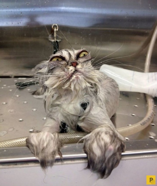 Wat ziet mijn pelsje er weer triestig uit : daarom word ik niet graag nat ... Al mijn charme is hierdoor vliegensvlug verdwenen en het duurt erg lang voor ik weer de oude ben . Extra massage bij het droog wrijven is broodnodig en een flinke borstelbeurt mag ook niet ontbreken . Waarom al dit gedoe ? Ik kan zelf wel voor me zorgen : geef me de vrijheid !