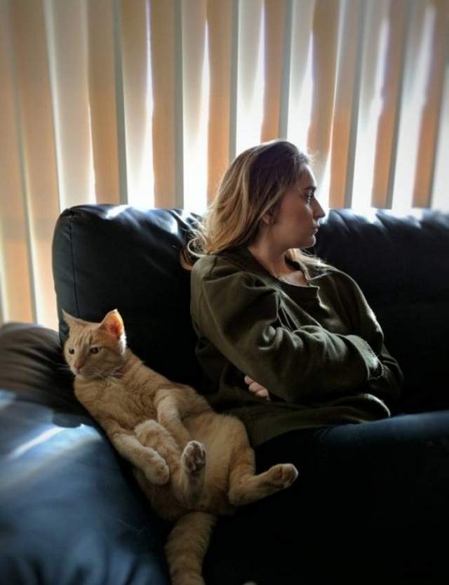 Vind je dat ik het baasje goed kan nabootsen ? Wel , ik zit ook nonchalant in de zetel om naar T.V. te kijken . Zij kijkt naar rechts en ik naar links ... Wie kijkt er eigenlijk naar T.V. ? Is het wel een interessant programma voor ons beiden ? Smaken kunnen verschillen , maar dit plekje vind ik opperbest !