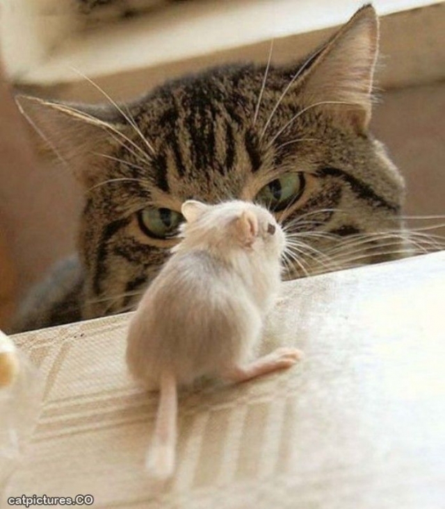 Aaaah , daar zijt ge ! Eindelijk , na een lange zoektocht , heb ik je gevonden ... Ik ben gefascineerd door knaagdieren en in het bijzonder door witte muisjes . Gaan we spelen of heb je er geen zin in ? Wie trekt er aan het langste eind ?