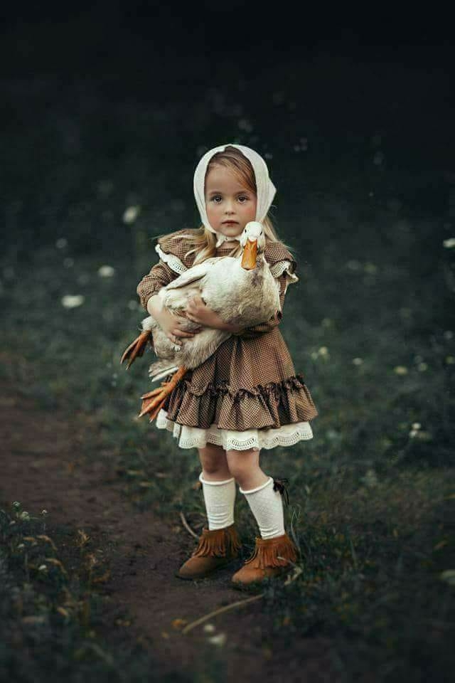 Wat een schattige lief meisje met die grote eend In haar armpjes Je ziet dat ze er van houd