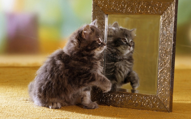 Oei , er is er nog zo ene ... Toen ik jong was , ging ik achter de spiegel kijken , maar geen resultaat . Nu klop ik er nog eens op met mijn voorpootje , maar dat helpt niet want die andere doet net hetzelfde . Waarom brengt men me in de war ? Dat is niet eerlijk !