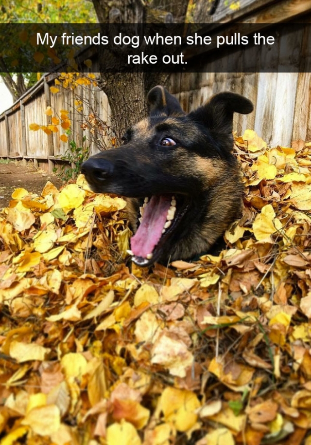 Hij wordt dol bij die gevallen bladeren....