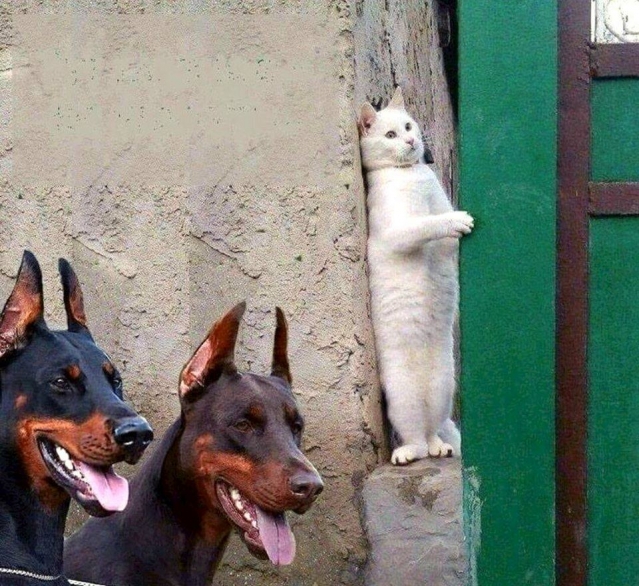 Niet ademen ... Ik sta stokstijf tegen de muur geleund achter het hoekje , wanneer twee honden de kust onveilig maken . Waar zijn ze naar op zoek ? Is er een dief die verjaagd moet worden ? Hun tong hangt uit hun mond ... Ik hou mijn mond wel : veiligheid primeert !