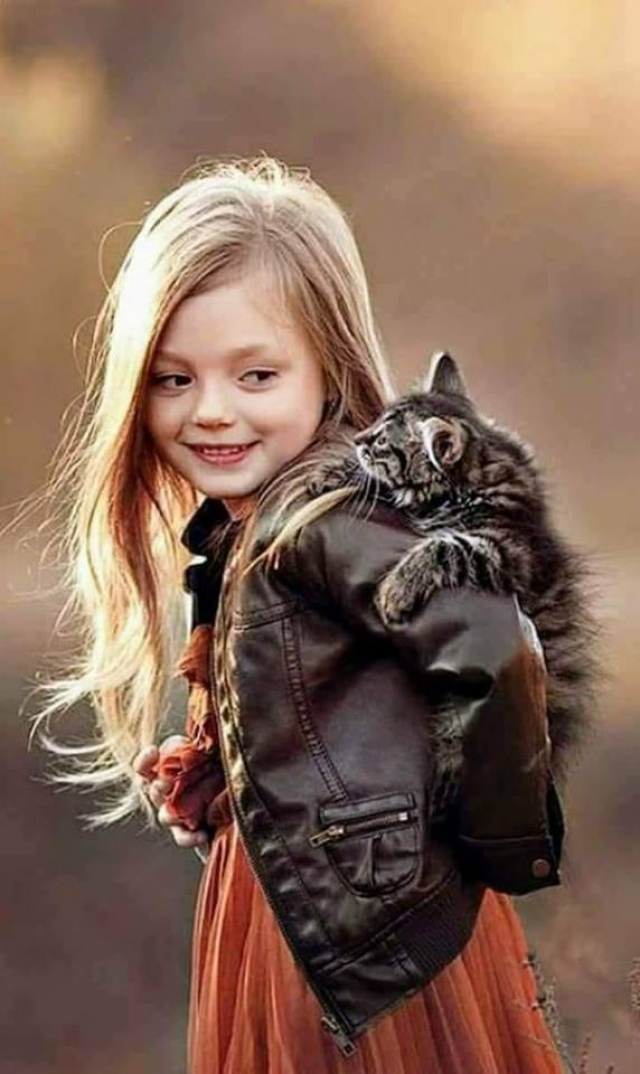 Dit meisje kijkt me vaak vriendelijk aan ; dus klauter ik via haar rug op haar schouder . Als ik poeslief miauw en spin , word ik misschien weer verwend met een kommetje melk en een bordje lekkere korreltjes . We zijn beiden schattige , dikke vrienden : dat is in mijn geheugen geprent !