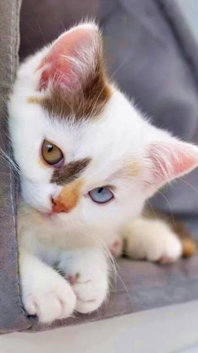 Ik ben een speciaaltje , zeggen ze , want ik heb een guitig snoetje ... Kijk maar naar mijn oogjes : ze hebben een verschillende kleur ( blauw en geel ) . Op mijn neusje pronkt een beige vlek en net daarnaast een bruine . Ook mijn ene oortje wordt omringd met zo'n vlek . Daardoor heb ik niet alleen een uniek uiterlijk , maar ook een bijzonder karakter : een schattebout waardig !