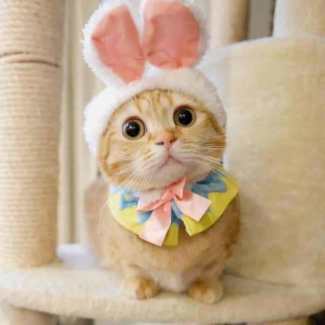 Een paashaas ??? Neen , een kat ... De kinderen vinden het leuk om mij als paashaas uit te dossen . Op mijn kop zetten ze een zacht mutsje met lange oortjes en rond mijn hals draag ik een kraagje met strikjes . " Wat schattig , " roepen ze dan , " heb je eitjes voor ons meegebracht ? " Verwonderd kijk ik hen aan , want ik begrijp ze niet . Maak ik ze nu gelukkig ?