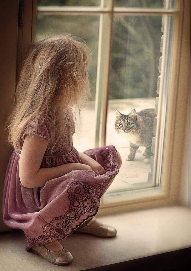 Regelmatig komt er een poes langs ons huis die ik graag eens zou aaien . Ze kijkt me vragend aan : mag ik even binnen ? Sorry , mag niet van mama ... Zal ik even naar buiten gaan ? Misschien lust ze wel een kommetje melk en kan ik haar strelen . Hopelijk komt ze nog vaak langs !