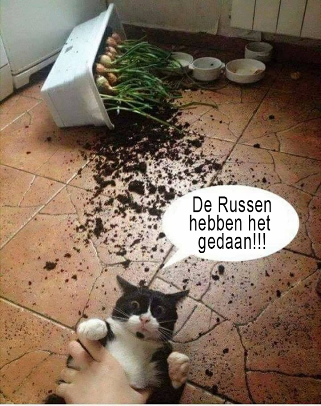 Als bloembakken in huis omvallen , hebben de Russen het gedaan ... Als je me grijpt en beschuldigt , voel ik me het zwarte schaap . Bloembakken horen buiten voor de verse lucht . Eigen schuld , dikke bult !