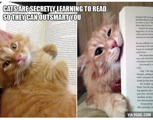 Wij , katten , dromen van lettertjes smullen : daarom knagen we weleens aan het bedrukt papier . Omdat onze baasjes er vaak mee bezig zijn , zal het wel heel interessant zijn . We installeren ons op de pagina's die op dat moment aan bod komen . Wat een overvloed aan lettertjes : hoe geraken we er wijs uit ? Je mag nooit de moed verliezen , dus hop met de geit !