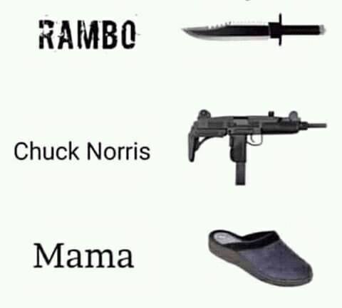 Altijd al gezegd...mama heeft niet veel nodig om Rambo en Chuck de baas te kunnen.