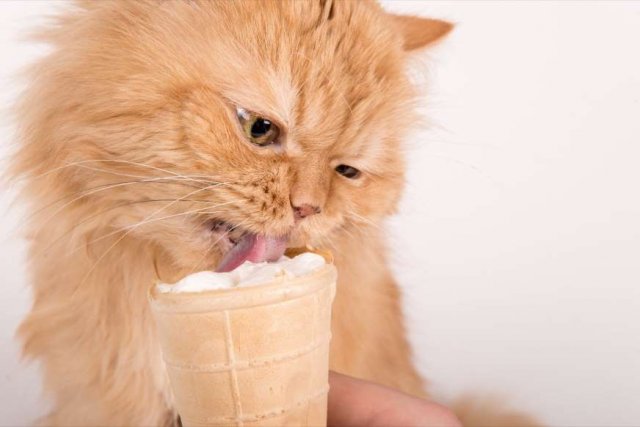 Met mijn rasptongetje smul ik van een lekker vanille ijsje ... Het streelt mijn tong : dit is het allerbeste dat bestaat . Jammer dat ik maar zelden de gelegenheid krijg om hiervan te profiteren . Zal ik mijn baasje aansporen om met mij meer ijsjes te delen ? Zalig spinnen op haar schoot ... : mijn listige aanpak werkt misschien wel !