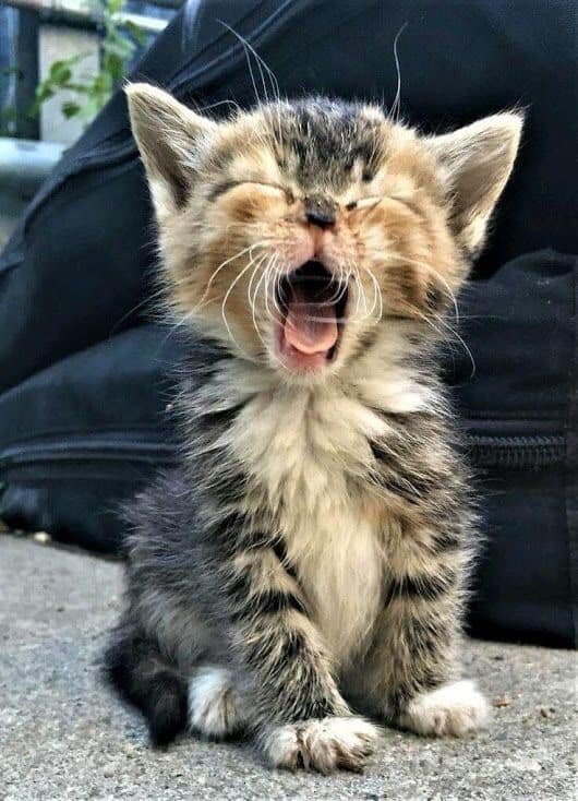 Lekker geeuwen zoals de leeuwen ... Zo toon ik mijn rasptongetje en scherpe tandjes terwijl ik mijn oogjes dichtknijp en dat maakt indruk als mini-roofdier . Ook al voel ik me moe , ik snak naar avontuur . Meer afwisseling zouden mijn krijgskunsten beter in de verf zetten . Ik ben immers geen doetje : met alle siamezen , maar niet met den deze !