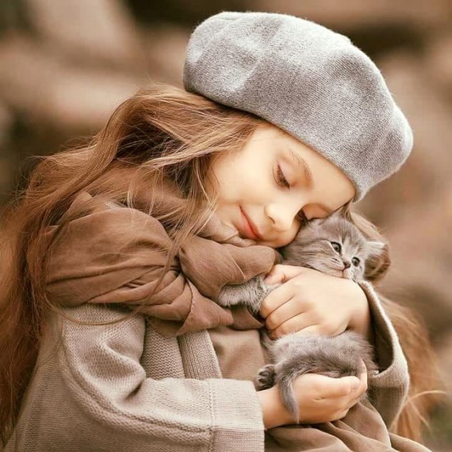 Kleine meisjes zijn vaak dol op kittens : zo zacht en zo schattig ... Zoals een baby willen ze hen vertroetelen : oppakken , wiegen , aaien , kusjes geven . Met hart en ziel dragen ze zorg voor deze kleine deugnieten . Dikke vrienden ... daar zijn geen woorden voor !