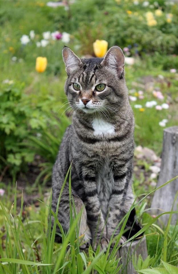 Vanop een omgehakte boomstam overzie ik mijn groene en kleurrijke territorium ... Ruist er iets door het struikgewas dat me boeit ? Wordt mijn jachttalent gemotiveerd of doe ik het vandaag op mijn gemak ? Als fiere poes pluk ik de dag en zorg voor een lach !