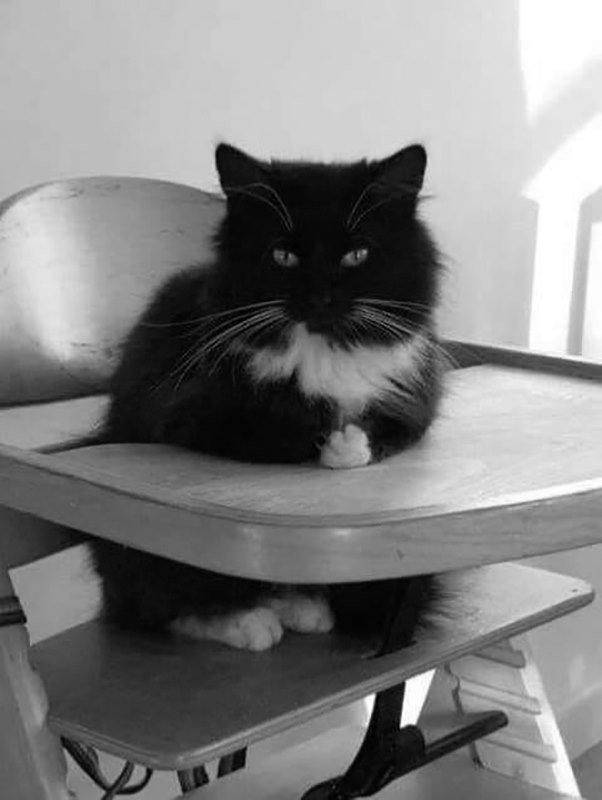 Ik houd van het " kakstoeltje " , omdat het me een comfortabele , afwachtende houding bezorgd : met mijn achterpootjes op het zitje en mijn voorpootjes op het tafeltje observeer ik de omgeving . Ik ben dol op dit plekje , ook al is het héél rustig vandaag . Mijn brave voorbeeldfunctie krijgt zeker navolging !