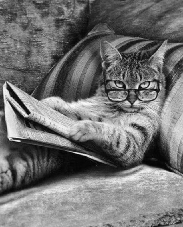 Met mijn brilletje op mijn neus pluis ik graag de krant uit , terwijl mijn kopje rust tegen een zacht kussen . Ja , in het Nederlands gaat dat wel ... Naast de miauw-taal beheers ik ook de mensentaal van thuis . Die is vaak heel grappig : met heel Antwerpen , maar niet met mij !