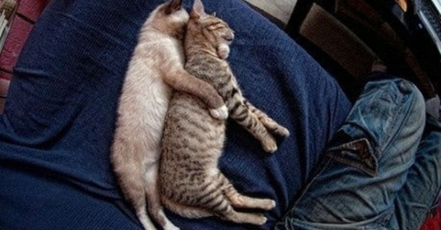 Ik , Mimi , kan Minoe niet missen : samen beleven we veel pret aan kattenkwaad binnenshuis en aan avontuurlijke tochtjes buitenshuis . Daarom leg ik mijn ene voorpootje rond zijn kin en het andere rond zijn romp om zijn milde warmte te absorberen . Wij zijn dikke vrienden die met hart en ziel verbonden zijn !