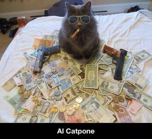 Ik ben Al Capone met een blitse zonnebril op mijn neus en een dikke sigaar in mijn mond ... Ik trek aan de touwtjes , want centen zijn mijn bollenwinkel en revolvers ondersteunen mijn miauw . Ik handel in de grijze zones en daaruit valt veel profijt te halen . Zin om toe te treden tot de club ? Voorwaarde : je moet ogen van voren en van achteren hebben !